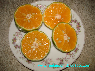 Though I have not eaten this type of citrus in the Philippines, our friends from Bohol confirms that they have the same kind of fruits in their province. They said they eat it with salt and they like it a lot. According to them it is called ?ukban? in their place and not really very abundant, can only be found in the farms/private lands and are not sold in the market. The fruits are sparkling green with shades of yellow and the skin is smooth and shining. It is such a pretty fruit but really pretty sour. :-)