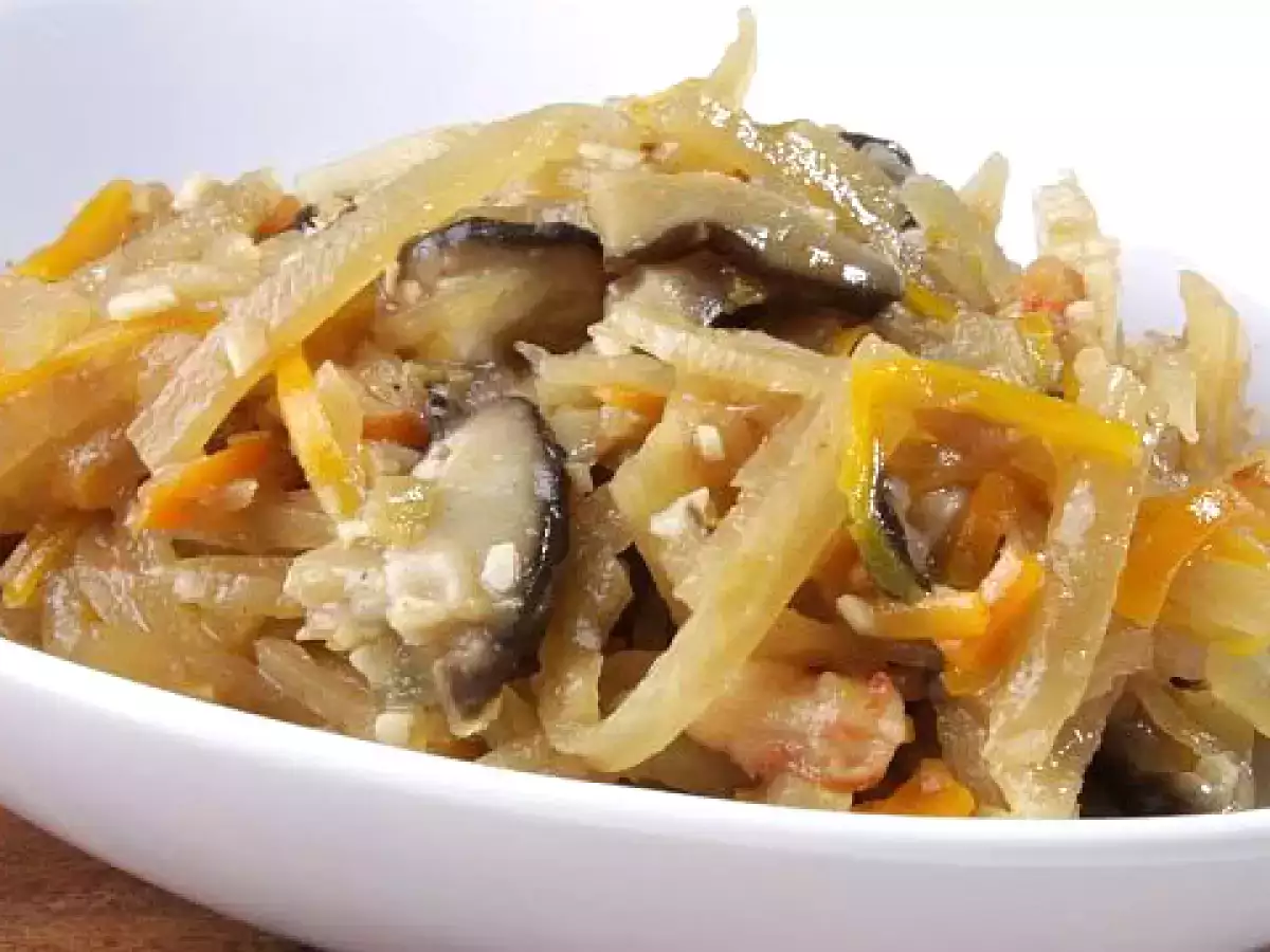 Add some oil into a wok and fry the dried shrimp until fragrant. Careful not to burn it. Remove from wok. Add a bit more oil and fry the chopped garlic until light brown. Add in the vegetables, the fried dried shrimp and fresh chopped shrimp. Add in the oyster sauce and 1/4 cup of water to the vegetables and cook until soften. Season to taste. To serve, fill the cases with the filling, top with garnishing and serve with chili sauce.