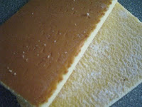 3. Divide the biscuit plate in two equal halves. Spoon some Nougatcream on the bottom (reserve about 1/3 to cover)
