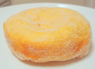 Pour sugar into a small container, and once the doughnuts have cooled slightly toss the doughnut into the sugar, and coat on both sides.