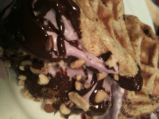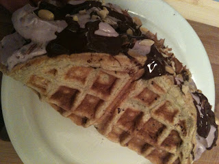 add on the toppings if you are using them.? fold the waffle in half length wise and cut in half.