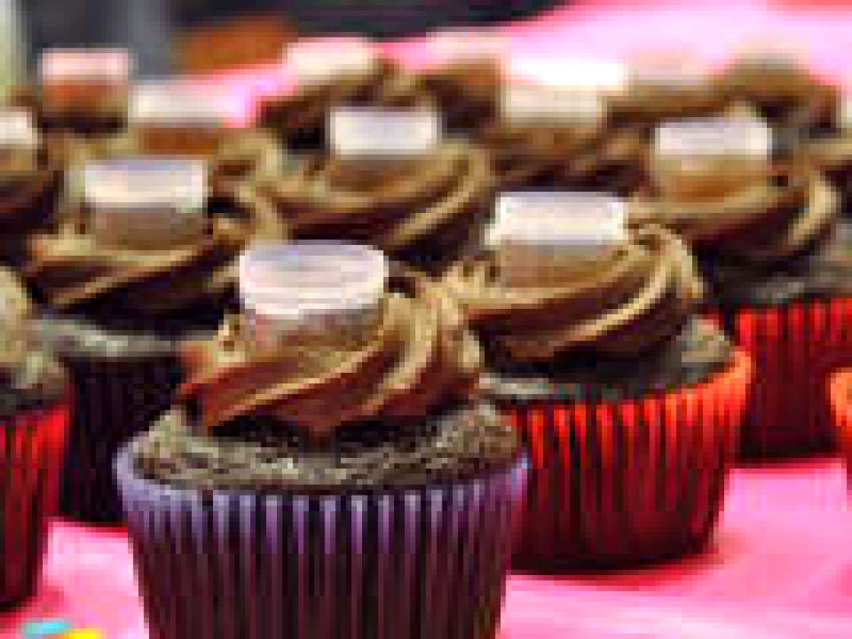 Fill the cupcake wrappers 3/4 full and bake for 20 minutes. Remove pan from oven and let cool on a rack for 10 minutes. Remove cupcakes from pan and place on same rack to finish cooling completely. Frost with Dark Chocolate frosting, then add a small shot glass to the center. Take an eyedropper and add just enough Dr Pepper to fill the shot glass.