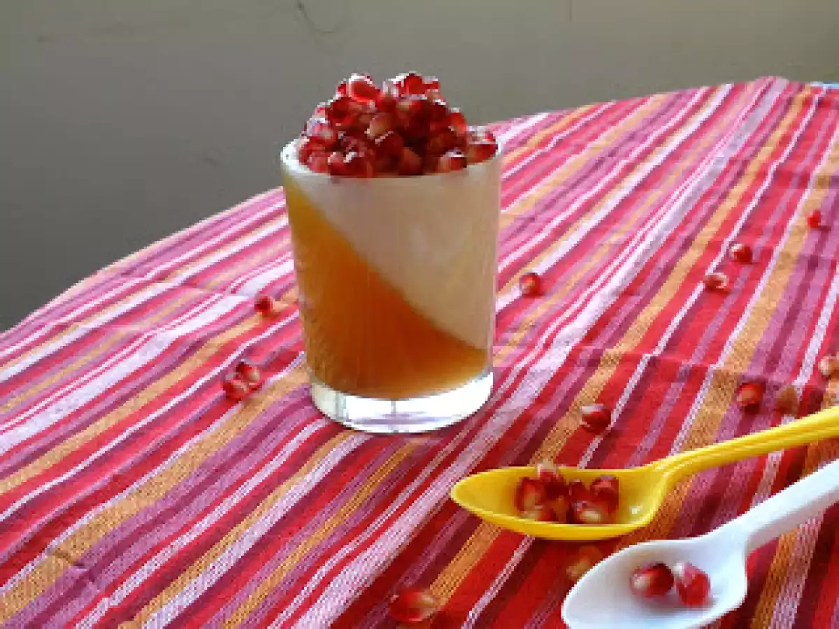 - Add in remaining ingredients, i.e., the remaining yogurt, honey and the ginger powder. Whisk into submission and pour into the verrines filled with honey and lemon tea gelee.