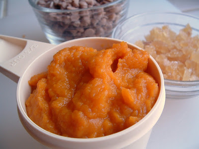 ...nor mini cinnamon baking chips(purchased online at King Arthur Flour). But I recommend it. You need pumpkin puree. Don't use canned pumpkin pie filling, by mistake! (Why does anyone even buy that? Pumpkin pie is so easy to make...just sayin'.)