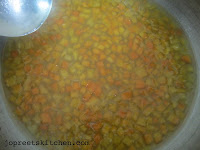 Chop Papaya and remove the seeds along with the white part. Peel off the skin of papaya and chop it into small cubes. It yields around 2 cup of raw papaya. Keep it aside.Boil 4 cup water in a pan. Once it starts boiling, add chopped raw papaya and let it cook for 3 mins on low-medium flame. Remove from the heat and let the papaya remain in the same water for another 5 mins.