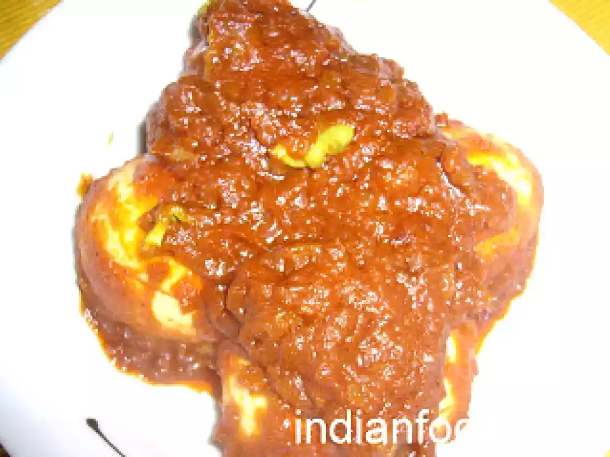 - Now add the ground paste and fry till oil separates. Finally add garam masala, pepper powder, boiled egg, salt, green chillies slit lengthwise and stir for a min.