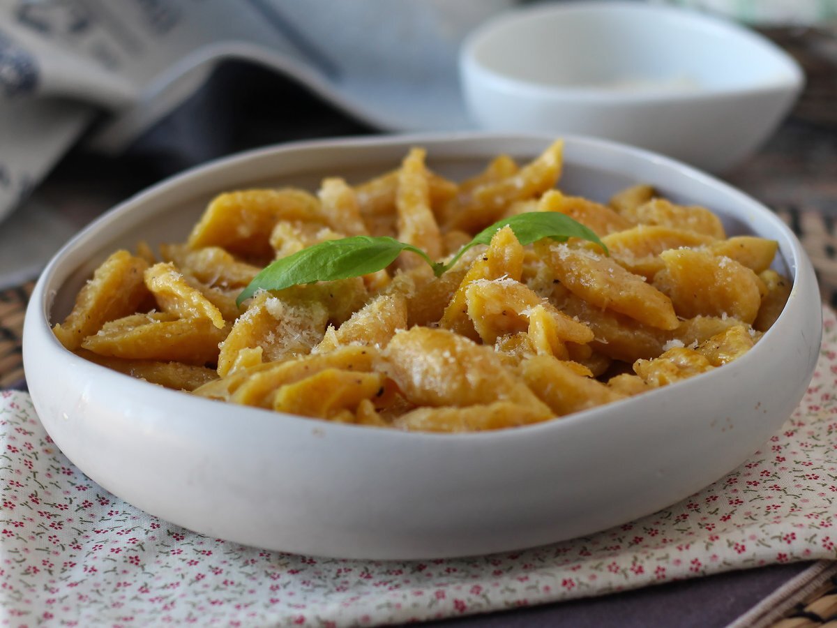 Fresh butternut pasta is the perfect example of a simple, delicious recipe :) With just two ingredients - butternut puree and flour - you can make an easy and original homemade recipe, without the need for sophisticated equipment. Butternut, with its naturally sweet sweetness, gives the pasta a soft texture and a pretty golden color that makes your mouth water just looking at it! You can accompany them with a simple drizzle of olive oil, a little Parmesan or even a knob of butter for maximum flavor ;-)