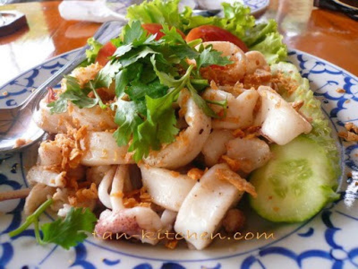Fried garlic squids(pla muk tod kra-tium prik thai)
