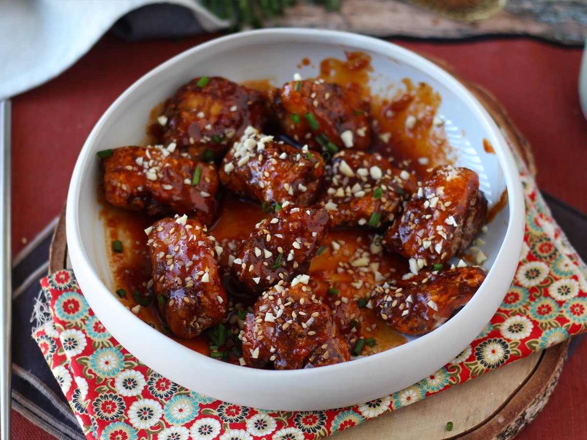 Lovers of sweet and savory and spicy food, this recipe is for you! We love the Asian flavours and crunch of these bite-sized chicken Dakgangjeong. The gochujang will warm your heart and take you on a trip to Korea, where fried chicken is usually served with beer, yes yes :-) In Korea, we call it "chimaek" (치맥), a combination of "chi" for chicken and "maek" for beer (in moderation, of course!). Here, we love to accompany it with basmati rice, for a complete, gourmet meal ;-) Follow the recipe steps below: