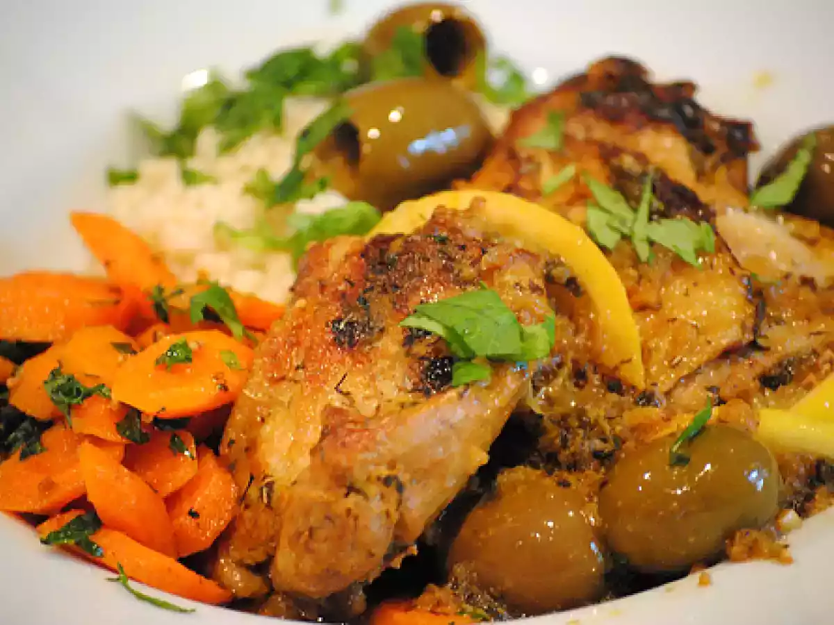 Moroccan chicken tagine with lemon, olives and thyme