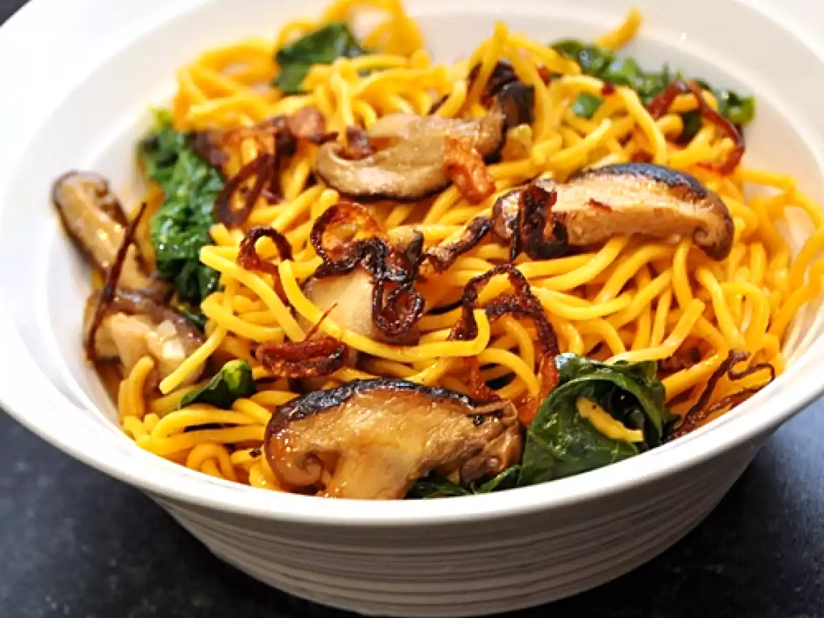 Noodles with chinese kale & shitake mushrooms