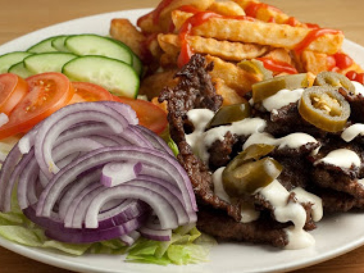 - Assemble the kebab strips with the other bits and pieces on plates.