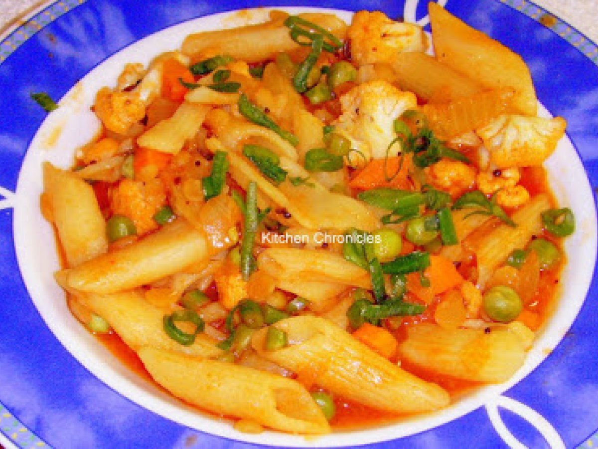 - Then add Penne Pasta with its water and let the whole mixture boil for another 5 minutes. The cooked Pasta will have a slightly thick sauce. Garnish with coriander leaves. Serve it hot with the thick sauce.