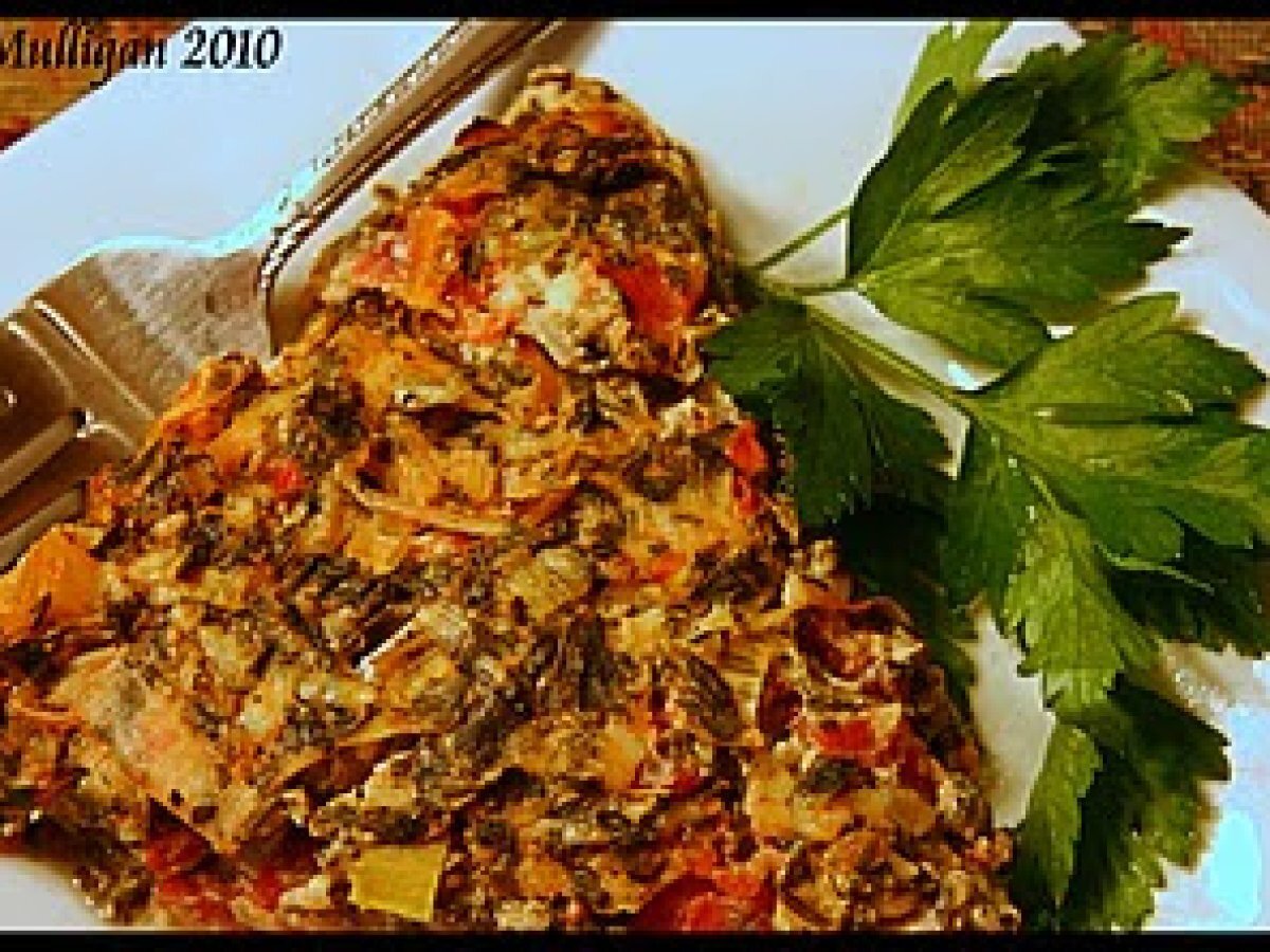 - Fold in leeks, tomato and cheese. Pour mixture into a 10 pie plate coated with non-stick spray.