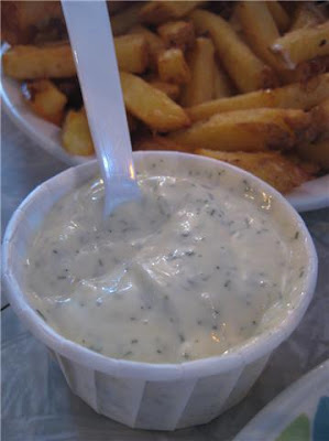 Small: $.80 Large $1.40The tartar sauce is another famous item at Moby Dick Seafood Restaurant. Start off with a premium ingredient and serve it with a homemade sauce?how can you go wrong?People say it?s the best tartar sauce ever, so I had my expectations set high. I wouldn't call it a classic tartar sauce though.It smells and tastes like dill vegetable dip and ranch salad dressing mixed together. It?s mayo based, so a bit thicker than a salad dressing. There?s lots of dill, some pickles and minced onions too. It could really be used as a potato chip dip or for a potato salad. It was creamy, but maybe a bit thinner in texture than a traditional tartar sauce. It was excellent, but the dominant flavour is dill and for a tartar sauce I would like a bit more of a pickled flavour.