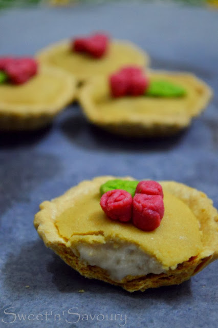 Preheat the oven to 180 degree Celsius. Bake the tarts for 15-20 mins or till they get a light brown colour.