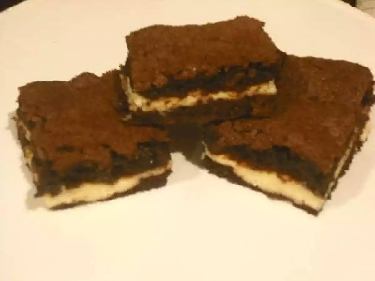 - For the brownie layer begin by beating eggs and caster sugar until fluffy.