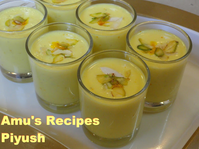 Piyush is a rich creamy drink. It brings back lot of my childhood memories. It also reminds me of a small restaurant called 'Prakash' at Charni Road, which serves the most delicious and best Piyush in the city. Seeing my craze for the drink and to discourage me from indulging in drinking Piyush, my grandmother used to tell me that Piyush is made from the water used to wash leftover Shrikhand utensils. But after few years, I realized that Piyush is actually made from leftover Shrikhand. Butter milk and nutmeg powder is added to this leftover Shrikhand to give it the right taste and consistency. Since this drink has become so popular in recent years, people especially buy Shrikhand to make this drink. Nutmeg powder is the key-ingredient in this recipe that gives that special taste of Piyush from Prakash.