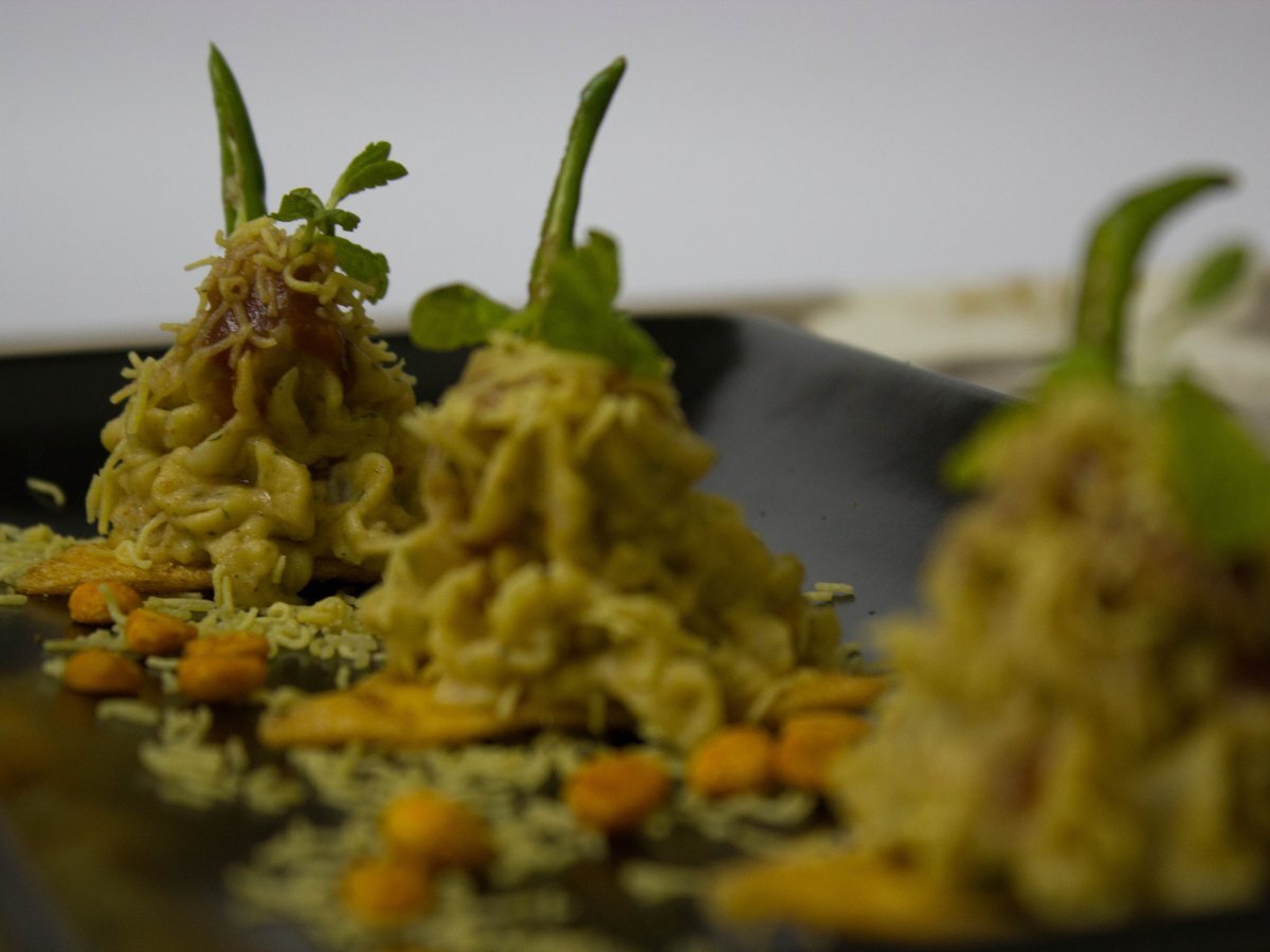 - Next top of the mixture pour little tomato ketchup & sprinkle some sev & coriander.