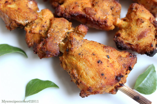 Tangdi Kabab( Tender chicken pieces marinaded in Indian spices and cooked in oven).