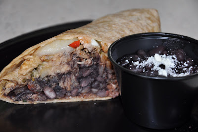 Carnitas Rajas Burrito on wheat tortilla