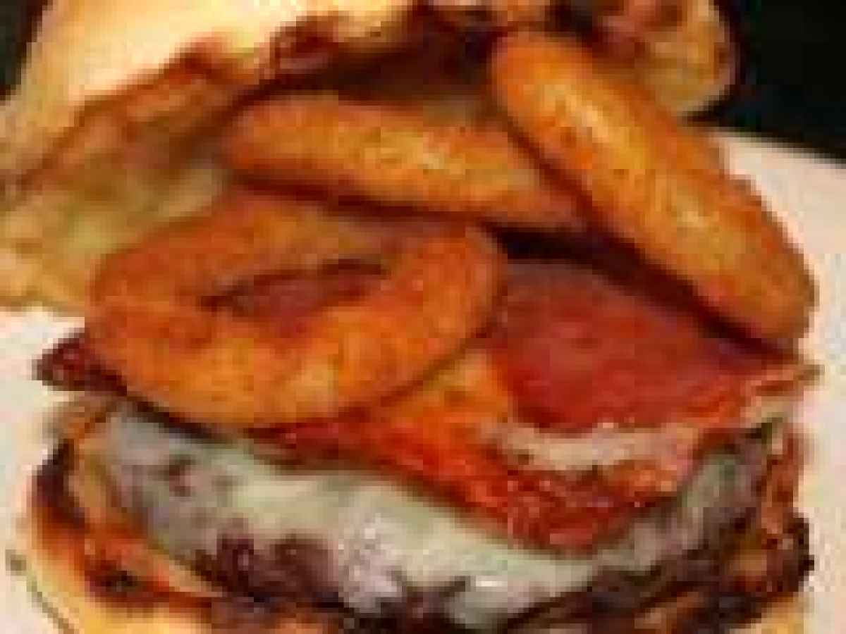 (I know...try to compose yourself.)You see the 80/20 all beef burger is topped with two slices American cheese, onion rings and a slice of