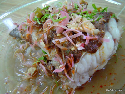 Mix the tomyam paste with the sugar and water, test for taste and spoon over the fish.
