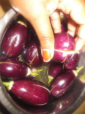 Stuff this coriander mixture in brinjals.Stuff as much as u can.
