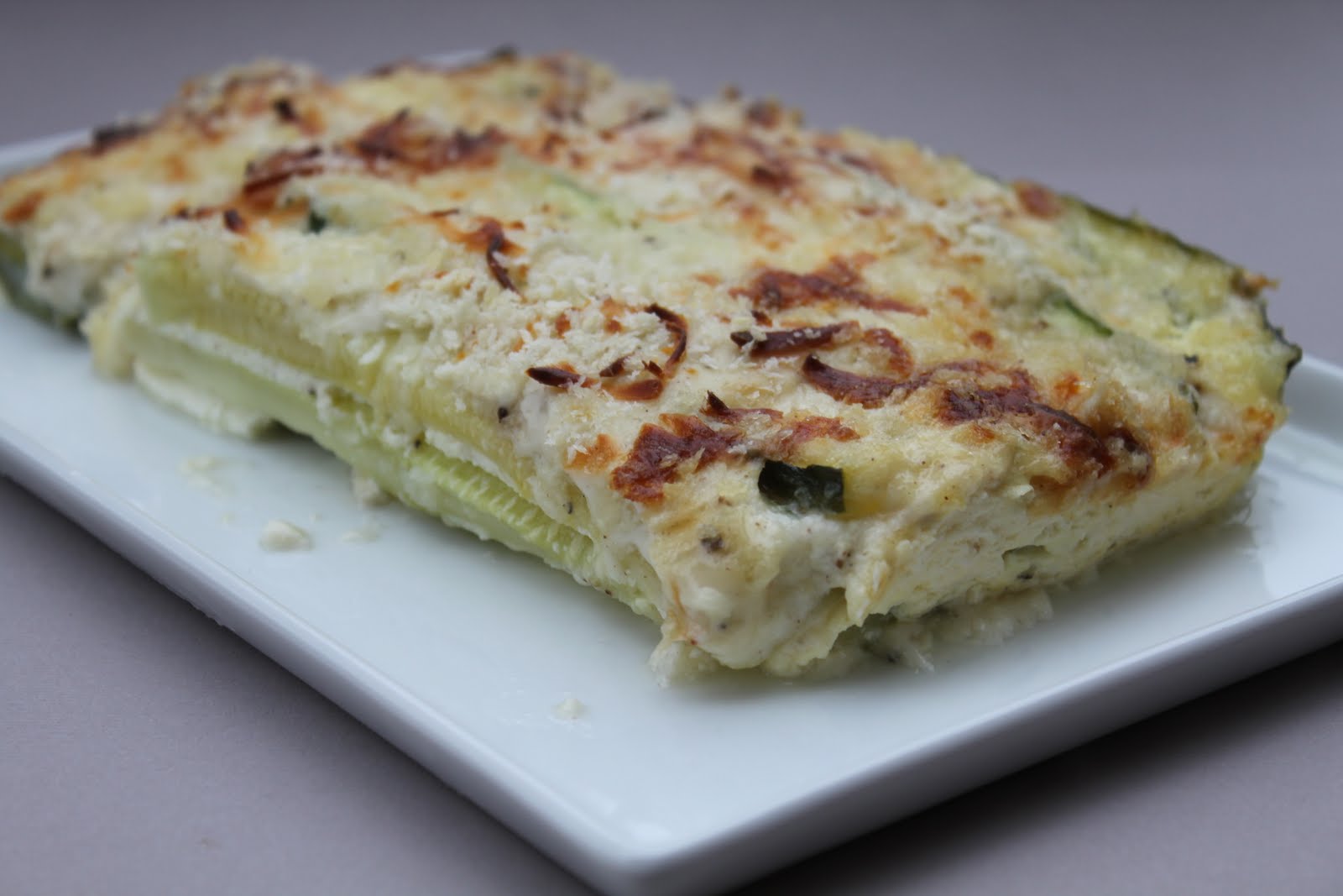 Contrary to the conventional culinary wisdom, I always make my béchamel sauce with cold rather than warm milk. In spite of that, it has always turned out perfect. The use of cheese increases the calorie content of this dish, but it is still a leaner dish than a typical lasagna, which is based on pasta.